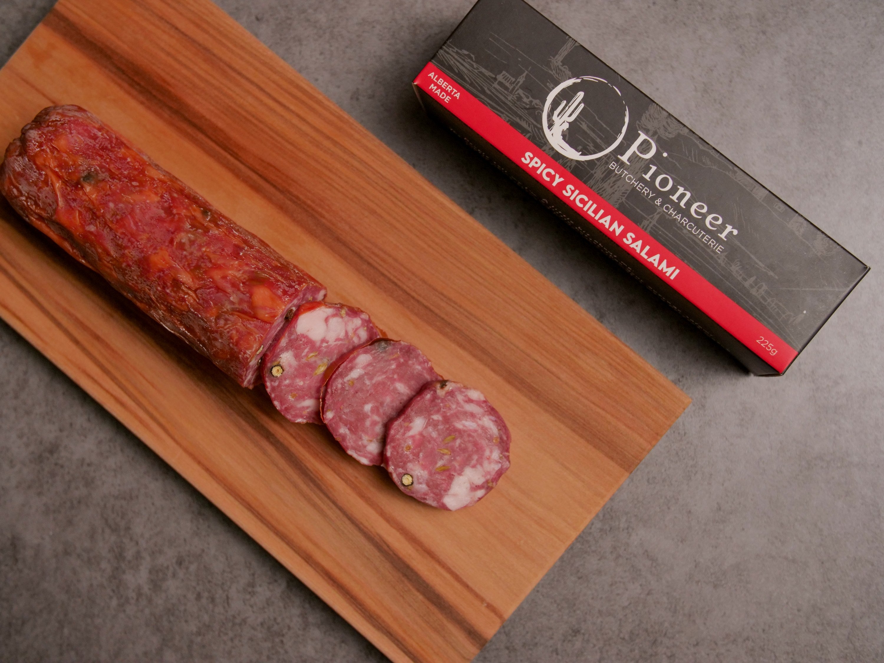 A classic Italian-style salami with a little extra heat. Savoury and approachable with a gentle kick of spice, it's perfect for anyone whole likes familiar flavour with a bit of zip. Proudly made in partnership with Pioneer Butchery & Charcuterie.